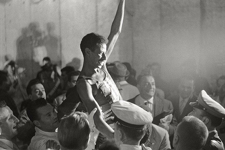 Mais qu’importe. Abebe Bikila tient tête aux meilleurs et notamment au Marocain Abdeslam Radi. Cependant, le duel prend fin à 2 km de l’arrivée, lors d’un passage devant l’obélisque d’Aksoum. Un monument célèbre mais surtout volé par Mussolini à l’Éthiopie en 1937. Le symbole crève les yeux mais ne coupe pas les jambes à Bikila. Le militaire accélère et décroche son adversaire. Abebe Bikila ne lâchera pas sa première place et s’en va remporter l’épreuve au pied de l’Arc de Triomphe de Constantin. Encore un pied de nez à l’Histoire, les troupes de Mussolini étaient parties de ce point avant d’aller conquérir l’Éthiopie…