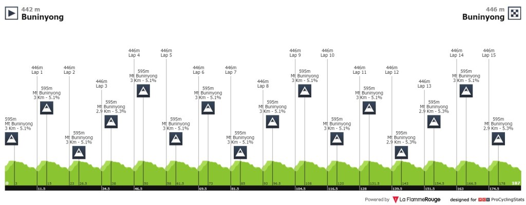 La course aura lieu à Ballarat, ville de près de 100 000 habitants, située à 120 kilomètres au nord-est de Melbourne. Le parcours, comme tout bon championnat national qui se respecte, sera une course en circuit : 16 tours d’un circuit de près de 12 kilomètres seront à parcourir. Le profil ne comporte pas de difficultés majeures mais l’enchaînement des côtes pourrait faire des dégâts, d’autant plus si des formations en surnombre comme Mitchelton-Scott prennent en main la course.