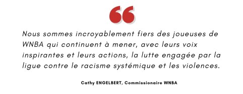 Notre histoire, c’est aussi celle de protagonistes engagées. Dans un contexte social tendu par les violences policières aux Etats Unis, cette saison suivra le mouvement Black Lives Matter. Grâce au travail d’équipe mené par la Ligue et le syndicat des joueuses, une plateforme et un conseil de justice sociale ont été mis en place pour discuter racisme, droits des femmes et des LGBTQ. L’ensemble des équipes s’échauffera aussi avec un tee-shirt sur lequel sera inscrit le nom des différentes femmes et jeunes filles victimes de violences policières.