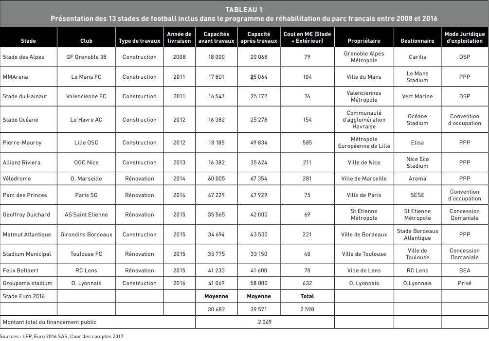 Bordeaux, Lille, Nice, Lyon, Marseille, Toulouse et Saint-Étienne ont tous un point commun. Leur stade a été rénové voire construit dans l’optique d’accueillir l’Euro 2016. Ces travaux ont eu un coût non négligeable. Sur le papier, c’est 1,64 milliard qui a été dépensé, mais en réalité cette somme est bien plus conséquente car elle ne prend pas en compte de nombreux surcoûts. Exemple à Marseille : « La mauvaise négociation financière avec Arema [entreprise chargée de l’exploitation du stade] nous a coûté 93 millions d’euros supplémentaires » explique le maire phocéen. La rénovation de 13 grands stades français entre 2008 et 2016 a coûté 2,6 milliards d’€.