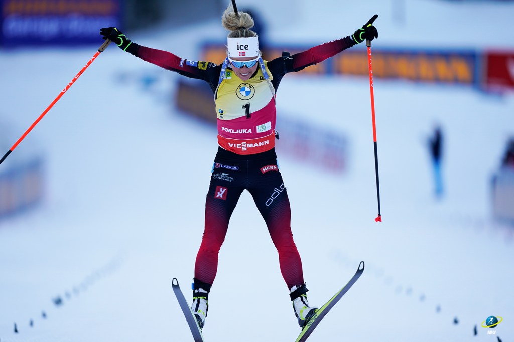 Mais la trentenaire n’a pas seulement gagné le classement général, elle a véritablement marqué l’Histoire du biathlon. En atteignant la barre des treize victoires sur une saison, elle se retrouve à une unité du record détenu par la Suédoise Magdalena Forsberg. Parmi ces succès, cinq doublés consécutifs sprint/poursuite et un record féminin de sept victoires de suite en sprint. Un format de course contre-la-montre qui lui convient parfaitement au vu de sa vitesse à ski. Et puis Eckhoff est imperturbable lorsqu’elle est seule sur la pas de tir. Une domination indiscutable et spectaculaire.