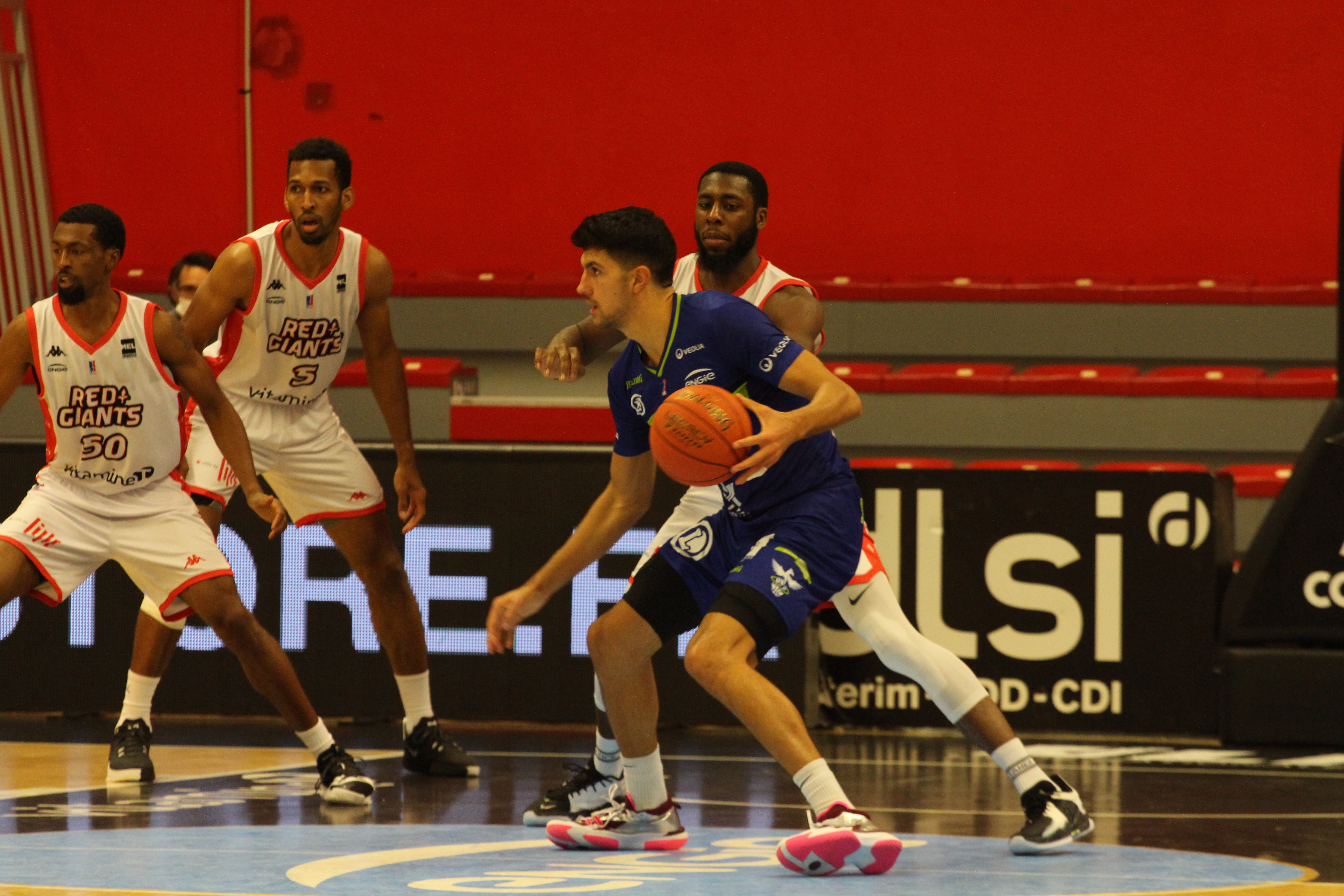 Puis l’attaque a pris le pas sur la défense. Les visiteurs ont ouvert le bal à 3 points pour ne plus s’arrêter (7/14 à longue distance sur toute la première mi-temps, 50% de réussite !) face à un LMB en difficulté qui s’est appuyé sur son jeu intérieur, avec notamment un énorme Nwogbo qui écrase tout dans la raquette (6/6). A la mi-temps, +2 pour les visiteurs (45-47).