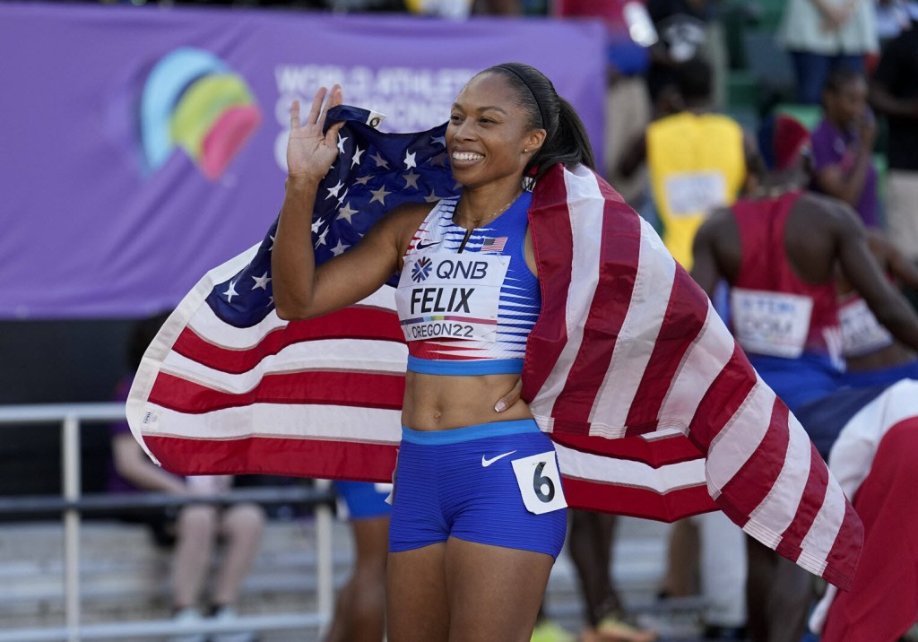 L’Américaine tire sa révérence après 20 ans passés au plus haut niveau. Pour sa dernière course en carrière, elle est alignée sur le relais mixte du 4x400m. L’équipe des Etats-Unis bute sur la République Dominicaine et les Pays-Bas, mais se pare tout de même de bronze. Allyson Felix ajoute une énième médaille à son palmarès. Cela aurait pu s’arrêter là. Mais le staff américain la rappelle pour participer aux séries du 4x400m féminin quelques jours plus tard. Non-alignée pour la finale, ses coéquipières se chargent de lui ramener une dernière médaille pour compléter sa collection. Et du plus beau métal s’il vous plaît ! Son total en carrière se porte donc à 11 médailles olympiques et 20 médailles aux Championnats du monde. Un record. Ces deux dernières médailles, chez elle aux Etats-Unis, couronnent une carrière remplie de succès et d’engagement.