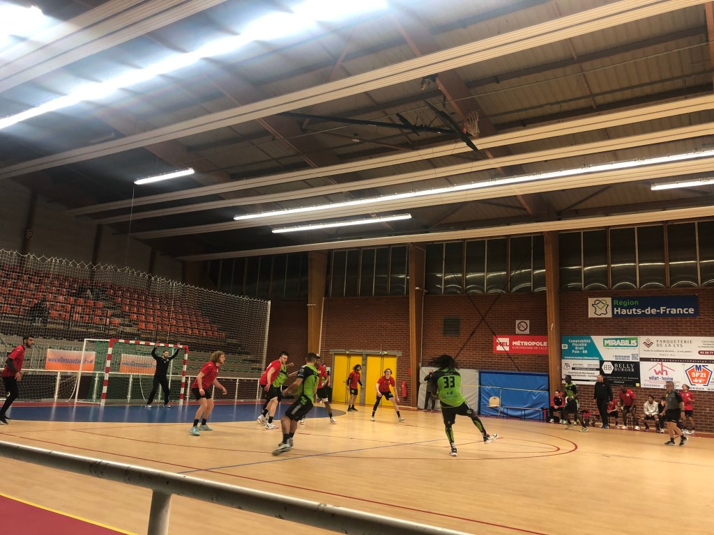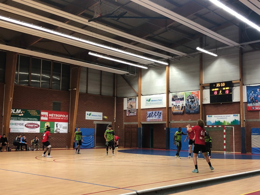 Les joueurs du LMHBCV, onzièmes de leur poule de Nationale, affrontaient l’US Ivry, huitième de la poule. La rencontre ne s’annonçait pas simple mais les joueurs de Villeneuve ont eu à coeur de réagir après leur défaite face à Torcy la semaine précédente. Dès les premières minutes le ton est donné, avec un gardien de Villeneuve en feu. Au terme de la première période, Nicolas Huyghe compte pas moins de dix arrêts à son compteur, insuffisant cependant puisque son équipe court après le score (14-16).