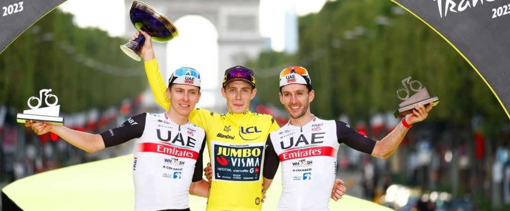 Face à l’arc de Triomphe, c’est bien le Danois qui est monté sur la plus haute marche du podium. Mais c’est avant tout, la victoire de toute une équipe, taillée pour l’épauler sur tous les terrains. Sur les étapes de plaine, Van Hooydonck, Van Baarle et le Français Christophe Laporte étaient très présents pour placer leur leader dans les premières positions du peloton pour éviter toutes chutes ou bordures. Dans les ascensions, Tiesj Benoot, Wilco Kederman et le lieutenant de luxe, Sepp Kuss, 12ème du général, impriment un tempo empêchant toutes attaques de ses principaux adversaires. A noter aussi l’inépuisable Wout Van Aert, capable d’isoler les favoris du Tour dans les cols et de sprinter dès le lendemain.
