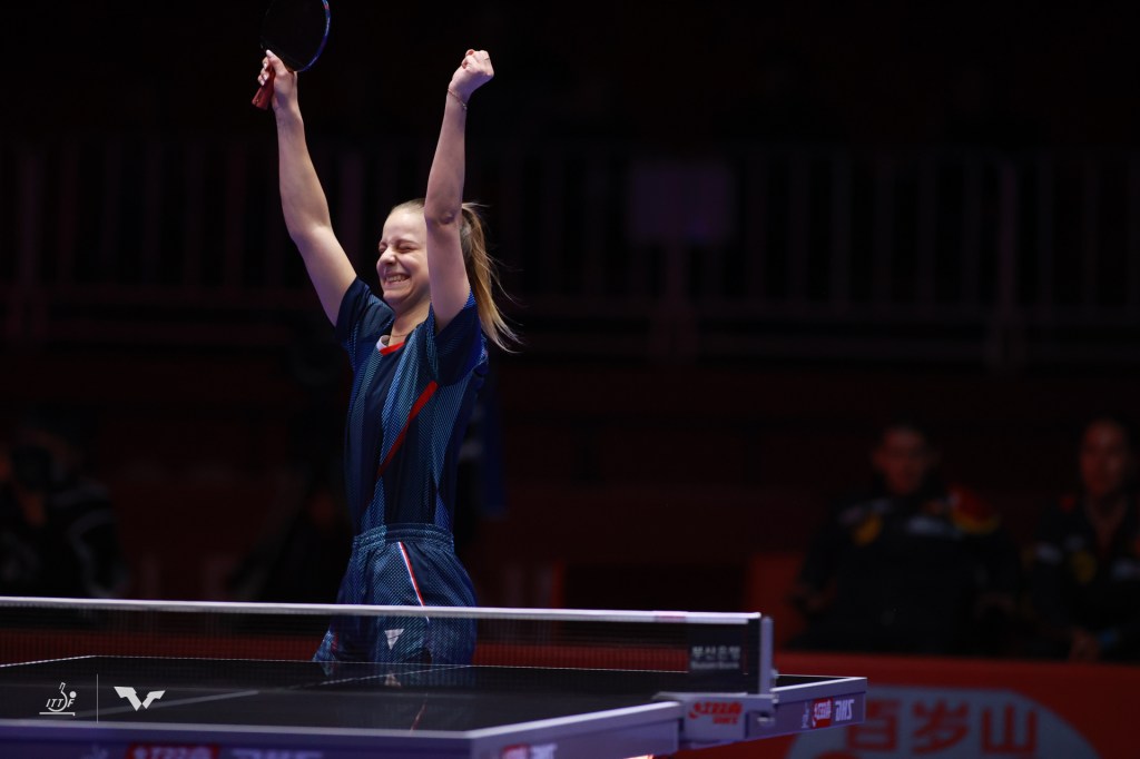 Une défaite en quart de finale aurait été tout à fait logique et compréhensible au vu du classement de cette équipe de France (8ème) et de l’adversaire qui se présentait face à elle : l’Allemagne (4ème). Après la belle victoire de Jia Nan Yuan dans le premier match et la défaite, in extremis, de Prithika Pavade (33e mondiale) dans le second, c’était au tour de Charlotte Lutz (n°92) de se présenter à la table. Opposée à Sabine Winter (n°54), la jeune française a offert aux nombreux fans suivant la rencontre un match de très haut niveau. Aidée par un coup droit intraitable, l’Alsacienne renverse l’Allemande (3-1) et offre ainsi un second point à la France dans cette rencontre. Ne reste plus qu’à finir le travail pour aller chercher la médaille. Prithika Pavade s’en chargera quelques minutes plus tard en infligeant une lourde défaite (3-0) à l’expérimentée Shan Xiaona (41 ans). C’est fait, l’équipe de France féminine est en demi-finale et ramènera une médaille de Busan ! En effet, aucune petite finale n’étant organisée, les deux équipes qui perdent en demi-finale sont médaillées de bronze. Le prochain adversaire des Bleues ? La Chine.