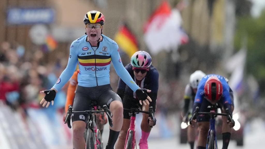 Du côté des Espoirs, c’est la Néerlandaise Puck Pieterse, victorieuse d’une étape sur le Tour de France Femmes, qui remporte le maillot arc-en-ciel, en finissant 13ème. En effet, la course Espoirs Femmes se déroule en même temps que la course au scratch, faute de moyens. Une chose qui va cependant changer l’année prochaine au Rwanda, avec la mise en place de leur propre championnat.