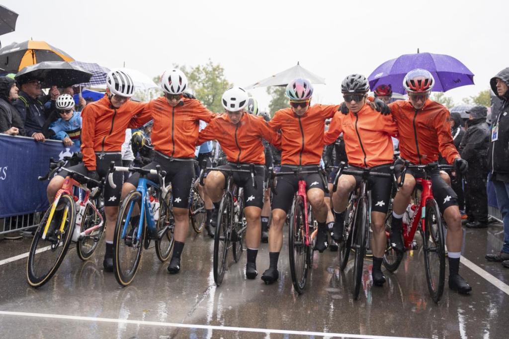 La Belge était attendue. Lotte Kopecky, championne d’Europe et du monde en titre, mais également vainqueure de Paris-Roubaix cette année, avait logiquement le statut de favorite. Cependant, effectuer le doublé s’annonçait rude pour elle, notamment à cause de la sélection des Pays-Bas, articulée autour de Demi Vollering, récente deuxième du Tour de France Femmes. Après une minute de silence en hommage à Muriel Furrer, la Suissesse décédée la veille, les coureuses se sont élancées sous une pluie torrentielle.