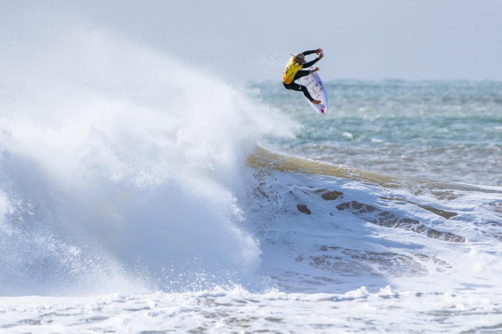 Chez les hommes, ce sont Marco Mignot, Jorgann Couzinet et Gatien Delahaye qui ont représenté la France. Si Couzinet et Delahaye se sont inclinés dès le premier tour de la phase éliminatoire, Mignot réussit l’exploit d’atteindre les quarts de finale. Il l’emporte d’abord face à Griffin Colapinto, un habitué du top 10 de la WSL, notamment grâce à une vague notée 8/10. Il plaque un reverse air engagé, qu’il célèbre avec enthousiasme, joie partagée par son père depuis la plage. Il poursuit ensuite sa lancée en huitième de finale face à Seth Moniz, avant de s’incliner de peu contre Baron Mamiya. Son parcours lui vaut une belle 5e place dans la compétition, et lui permet de décrocher la 18e du classement général. Il est ainsi en bonne position pour passer le cut de mi-saison, où les 22 meilleurs surfeurs resteront en lice.