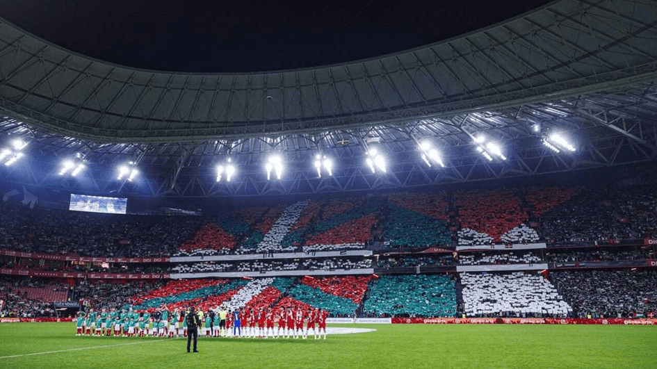 Devant eux, une affiche avec le mot « paix » traduit en basque, en anglais et en arabe. Enfin, en soutien au peuple palestinien qui connaît une grave crise humanitaire en raison des actions armées d’Israël, le club de Bilbao a décidé de reverser l’intégralité des recettes de cette rencontre à des organisations humanitaires intervenant sur place. « Depuis mon arrivée mardi, je vois qu’il y a plus de drapeaux palestiniens à Bilbao qu’à Ramallah » explique Dima Said, porte-parole de la Fédération palestinienne de football.