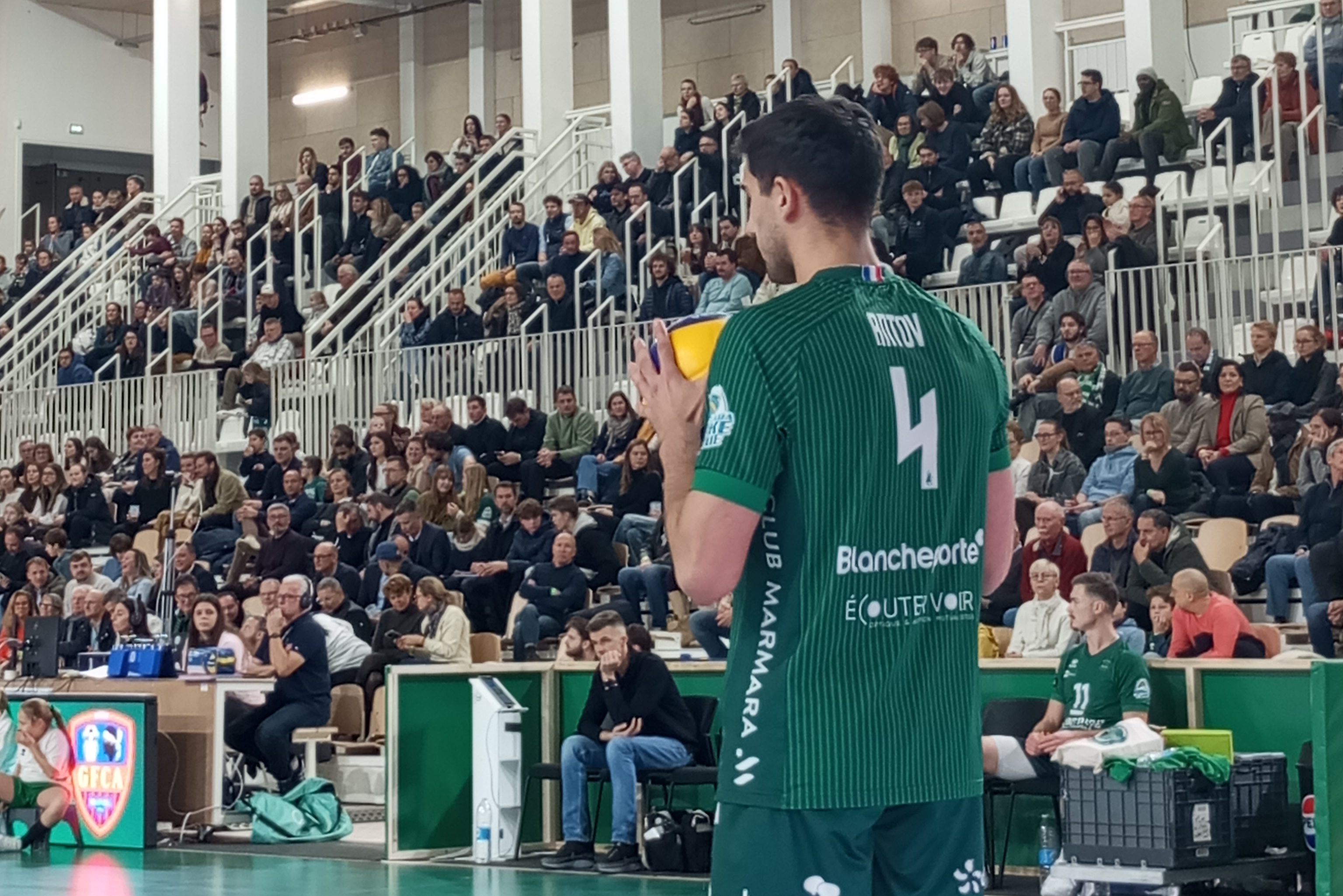 Les Tourquennois n’ont pas eu besoin de forcer leur talent durant ce troisième set. Ils en profitent pour faire plaisir aux spectateurs comme avec ce point marqué par Jan Martinez Franchi après une triple défense héroïque de ses partenaires (11-7). Le public a encore répondu présent ce soir et a poussé les joueurs tout au long du match comme le déclare Simon Roehrig : « Le public est toujours derrière nous donc on a vraiment envie de bien faire. » Les locaux continuent de frapper le plus fort possible pour faire déjouer la défense adverse. Cette puissance devient même violente lorsqu’Antov, d’un surpuissant smash, blesse à la mâchoire le libéro adverse Quentin Grosnon (20-14). Sans libéro remplaçant, les Ajacciens doivent s’adapter et c’est l’habituel réceptionneur/attaquant Victor Socie qui change de maillot pour devenir libéro. Le set se termine paisiblement par un service dans le filet de Lucas Salles (25-18).