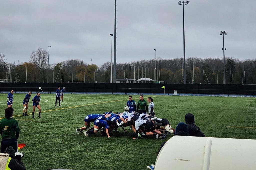Les joueuses de Villeneuve-d’Ascq (en bleu) conquérantes sur la plupart des mêlées du match