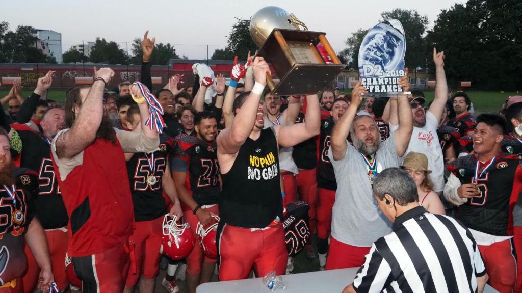Lors d’une saison 2019 historique, les Vikings remportent le Casque d’Or et sont sacrés champions de D2. Cet exploit leur permet alors de monter pour la première fois en D1, le plus haut niveau national. Cependant, cette dynamique positive est stoppée par la pandémie de Covid-19, entraînant l’annulation des saisons 2020 et 2021 et le départ de nombreux cadres de l’équipe. Le retour à la compétition en 2022 est marqué par une saison galère avec la dernière place de la conférence Nord (0 victoire – 10 défaites) et une relégation en D2.