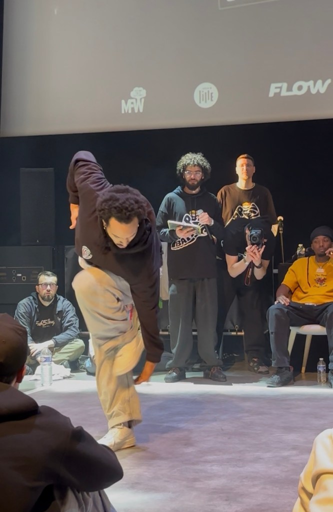 Pour débuter la compétition, le groupe DAMN’HEAP (4 danseurs) et Hokko Kujin offrent un show d’ouverture dans une salle remplie d’une ferveur bienveillante. Parmi ces 16 candidats qui se battaient pour remporter cette battle, se trouvaient des jeunes de la région, des habitués du parquet, tandis que d’autres évoluent au niveau européen. Chacun avait 60 secondes pour prouver qu’ils étaient le meilleur. L’ambiance était de mise grâce au speaker Sid-Ali et le DJ de la Maadlamalice aux platines. Lemzo et MA2T sont parvenus à se hisser jusqu’à la demi-finale, ils ont dû effectuer trois passages de 60 secondes pour persuader les deux jurés, Kuty et Lindsay, sur des samples de l’artiste Rikyu. Ainsi, ils ont fait lever, danser et chanter toute la salle de plus de 300 personnes.