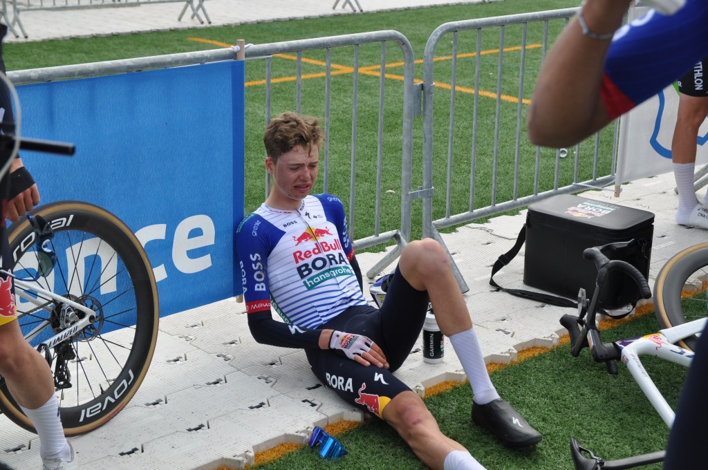 Si le leader des rookies de la Red Bull-Bora-Hansgrohe s’est imposé, il peut remercier son équipe, aux avant-postes toute la journée, par l’intermédiaire de Gijs Schoonvelde et Michiel Mouris. « Je suis très heureux pour lui, même si le sentiment est contrasté, car j’ai crevé dans le Carrefour de l’Arbre et donc je n’ai pas pu aider davantage l’équipe après ça », témoigne ce dernier, vainqueur de l’épreuve en U19 l’année passée. « On voulait être dans tous les groupes, on était confiant parce qu’on se sentait tous super forts. » Davide Donati ne s’est pas non plus privé de remercier son équipe en tombant dans les bras de ses compagnons de route après la délibération des commissaires après l’analyse de la photo-finish. « J’avais des jambes fantastiques, et une équipe fantastique », sourit-il après le podium protocolaire.